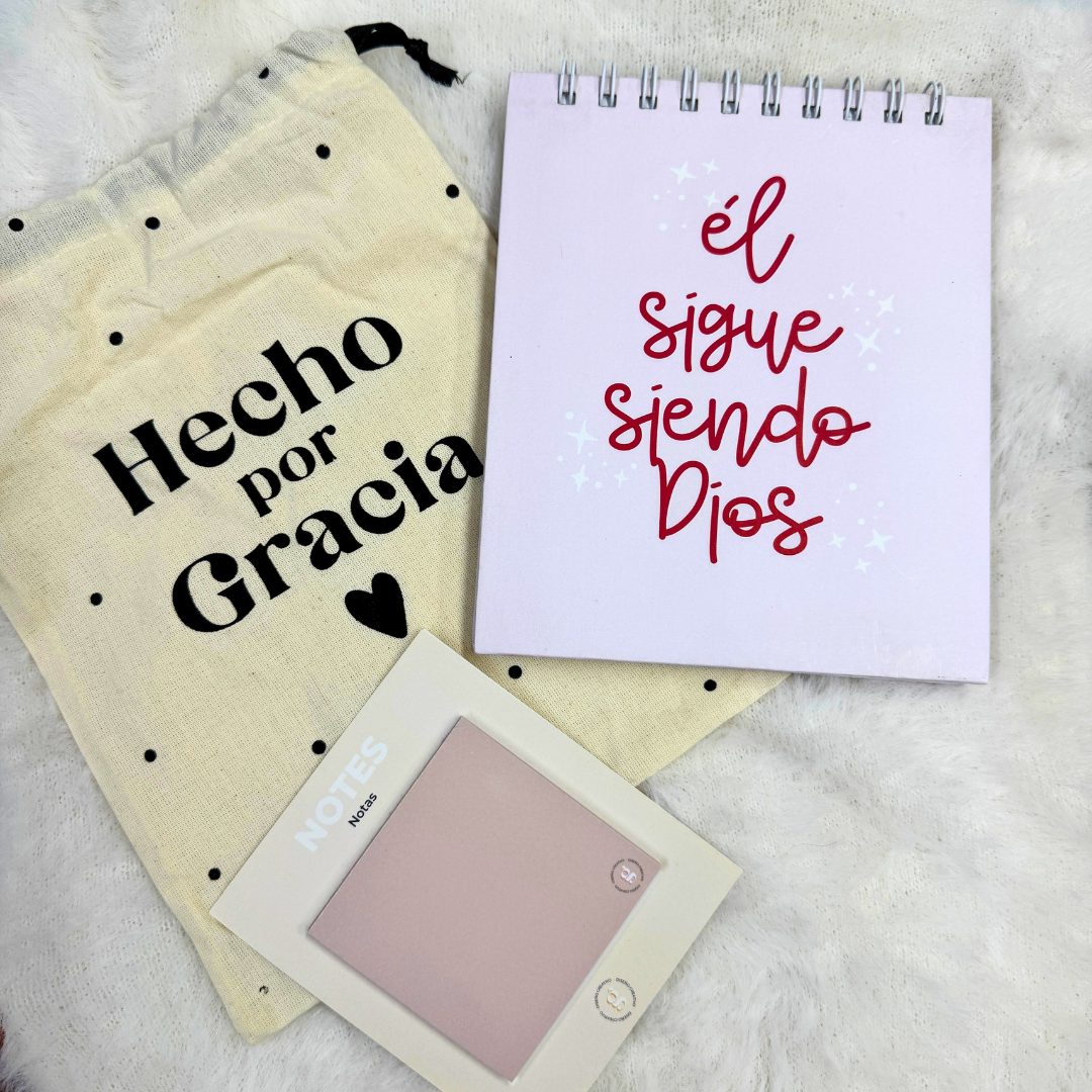 🙌✨ Cuaderno Bitácora de Confianza: Él Sigue Siendo Dios + Block de Notas + Tula
