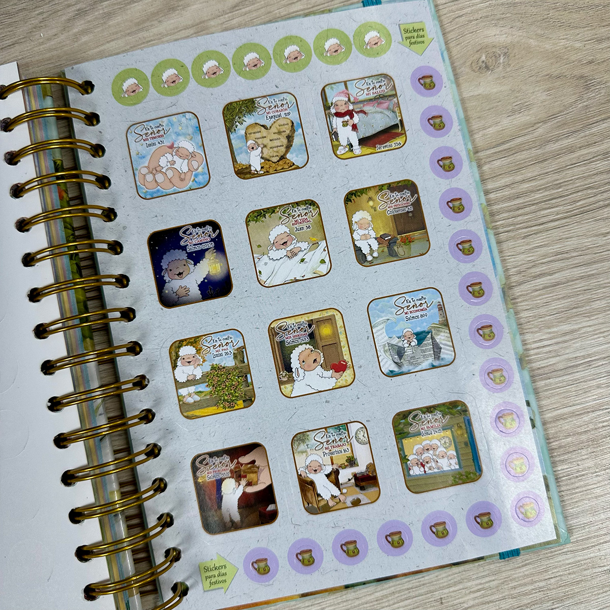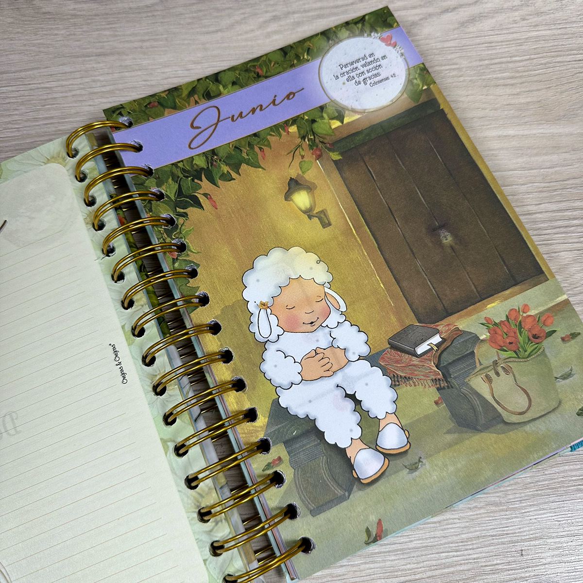 Cada mes comienza con un diseño único y tierno, acompañado de un versículo bíblico.