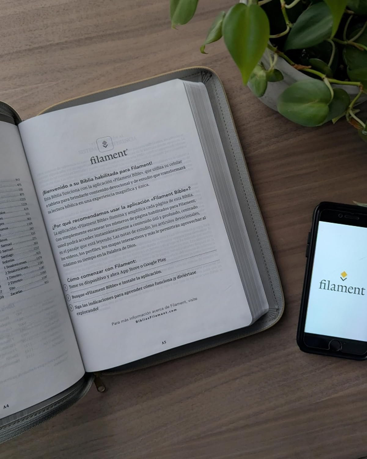 Además, esta Biblia es compatible con la aplicación «Filament Bible», lo que permite a los lectores acceder a mucho contenido y recursos digitales, enriqueciendo su experiencia de estudio.