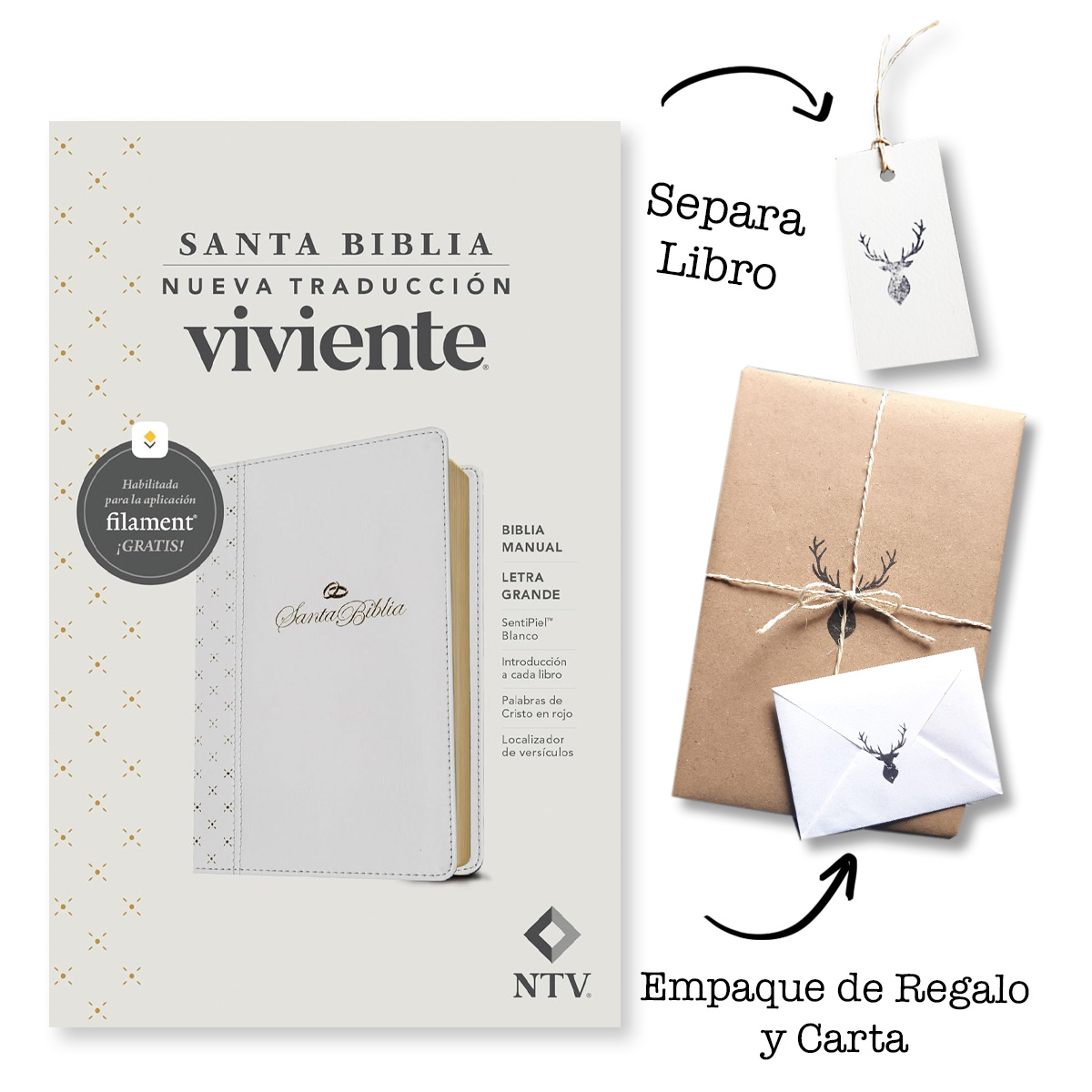 La nueva Biblia manual NTV con Filament de Tyndale ofrece un texto legible, un diseño atractivo en una Biblia con un tamaño fácil de transportar. Esta edición es ideal para la lectura desde el púlpito y conveniente para la lectura persona. Y aunque tiene el mismo precio cómodo de las Biblias básicas de texto, la Biblia manual NTV ofrece mucho más, al incluir la innovadora aplicación «Filament Bible». Esta aplicación le permite utilizar su teléfono móvil o tableta para conectar cada página a una amplia gama de contenido relacionado con la Biblia.