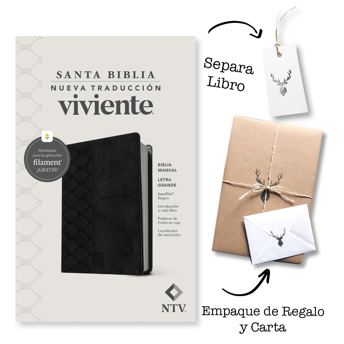 📖 Biblia Manual NTV con Filament – Símil Piel, Letra Grande 12 pts