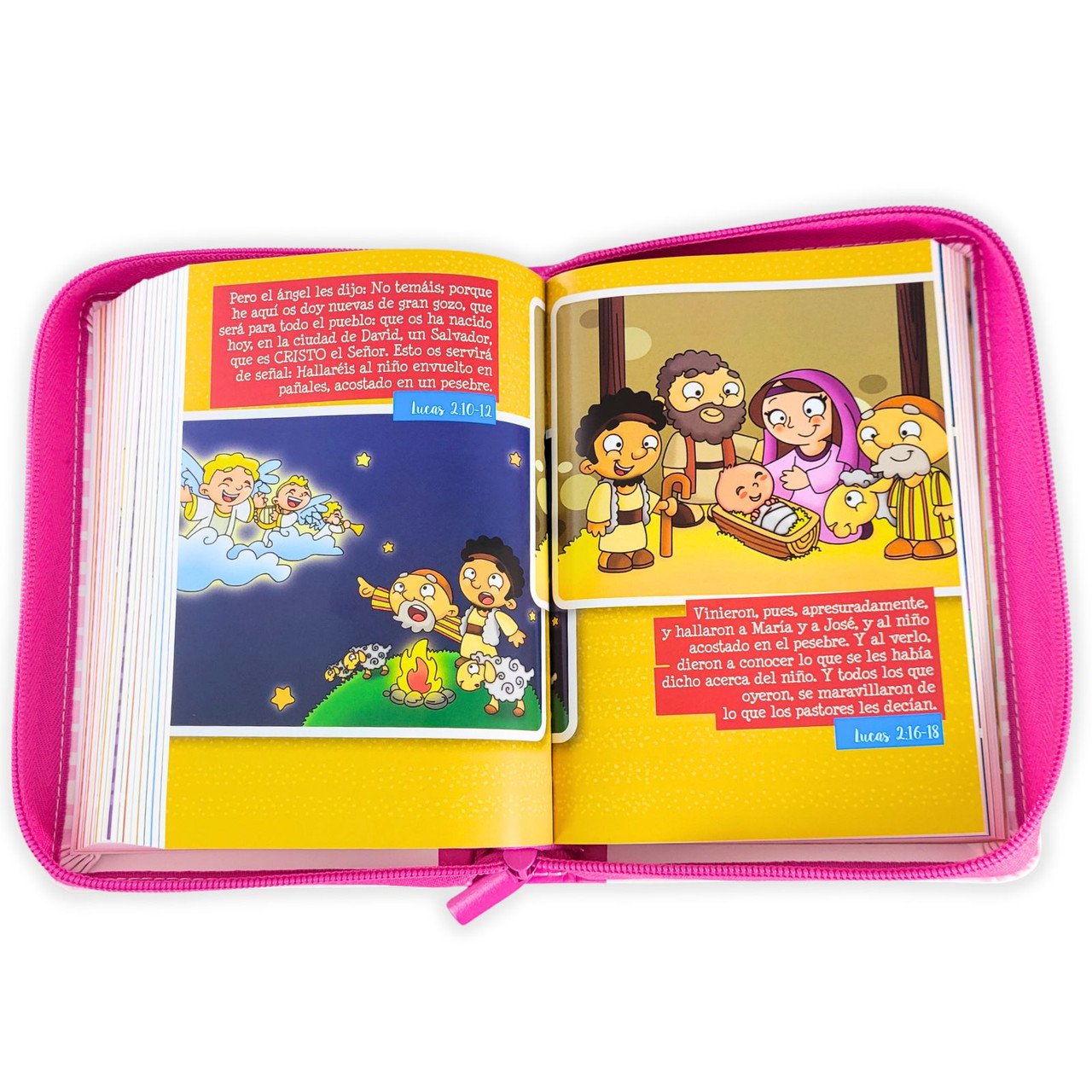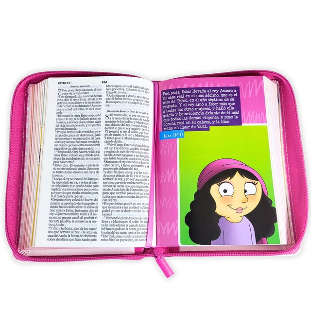 En estas láminas los pequeños encontrarán dibujos del tabernáculo, del templo, de los Héroes de la Fe, Salmos ilustrados, y muchas otras escenas que hacen que la lectura sea más visual, dinámica y significativa. Es una Biblia ideal para devocionales familiares, escuela dominical, regalos especiales y para introducir a los niños al mensaje eterno de la Palabra de Dios.