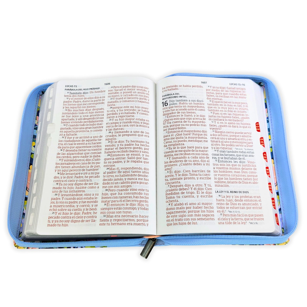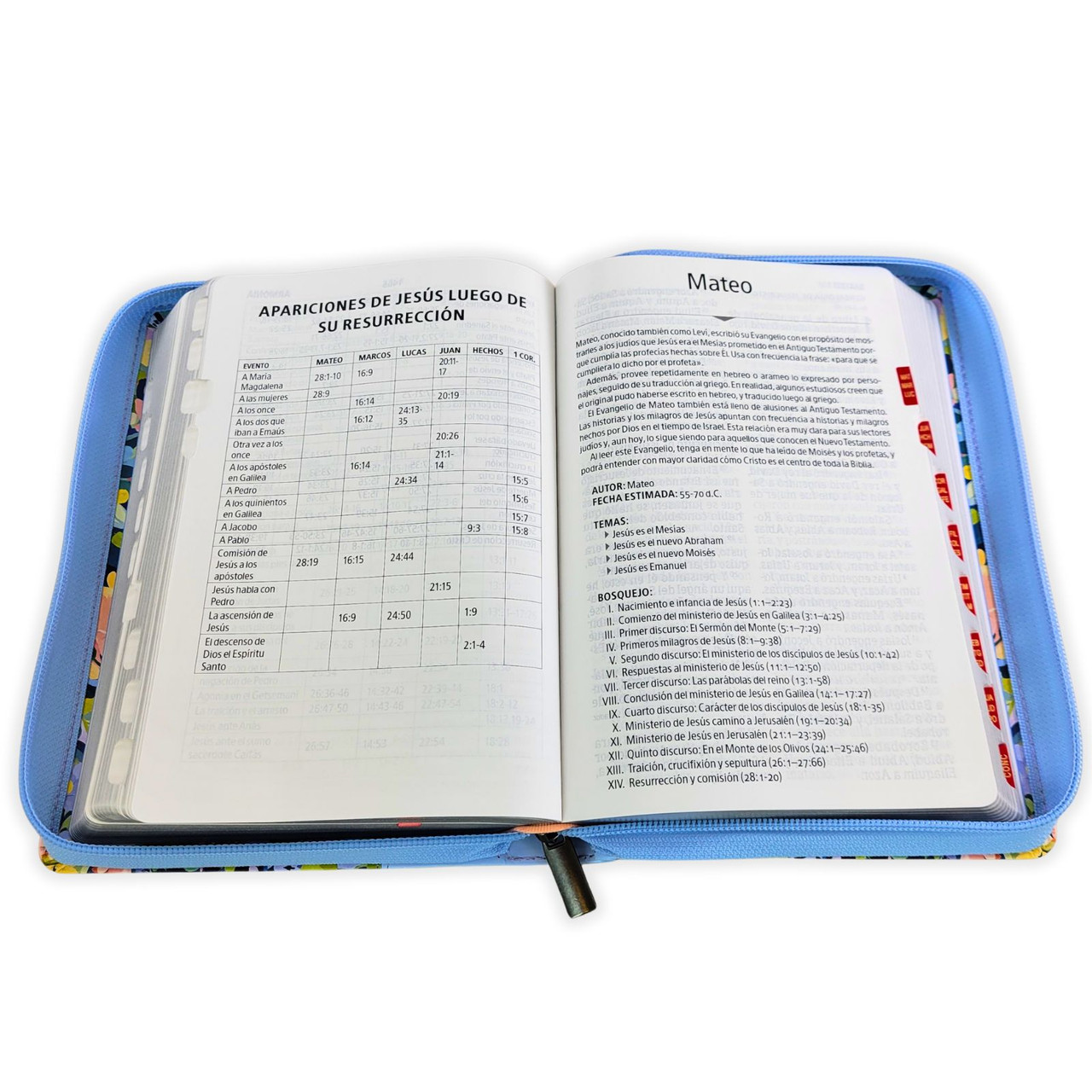 Biblia RVR60 Manual Letra Gigante Celeste Flores Cierre Índice