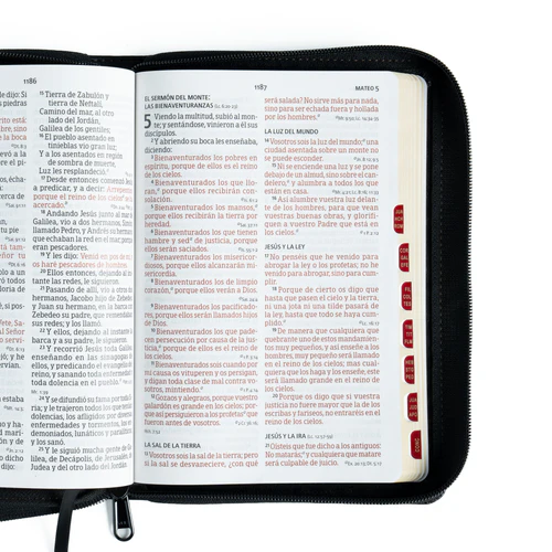 Descubre la Biblia RVR 1960 más popular en español, ahora en formato manual con letra grande y diseño legible. Esta edición especial incluye referencias en cadena, palabras de Cristo en rojo, plan de lectura anual, atributos de Jesús y mapas a todo color. Perfecta para el estudio personal, la enseñanza y la lectura devocional diaria.
