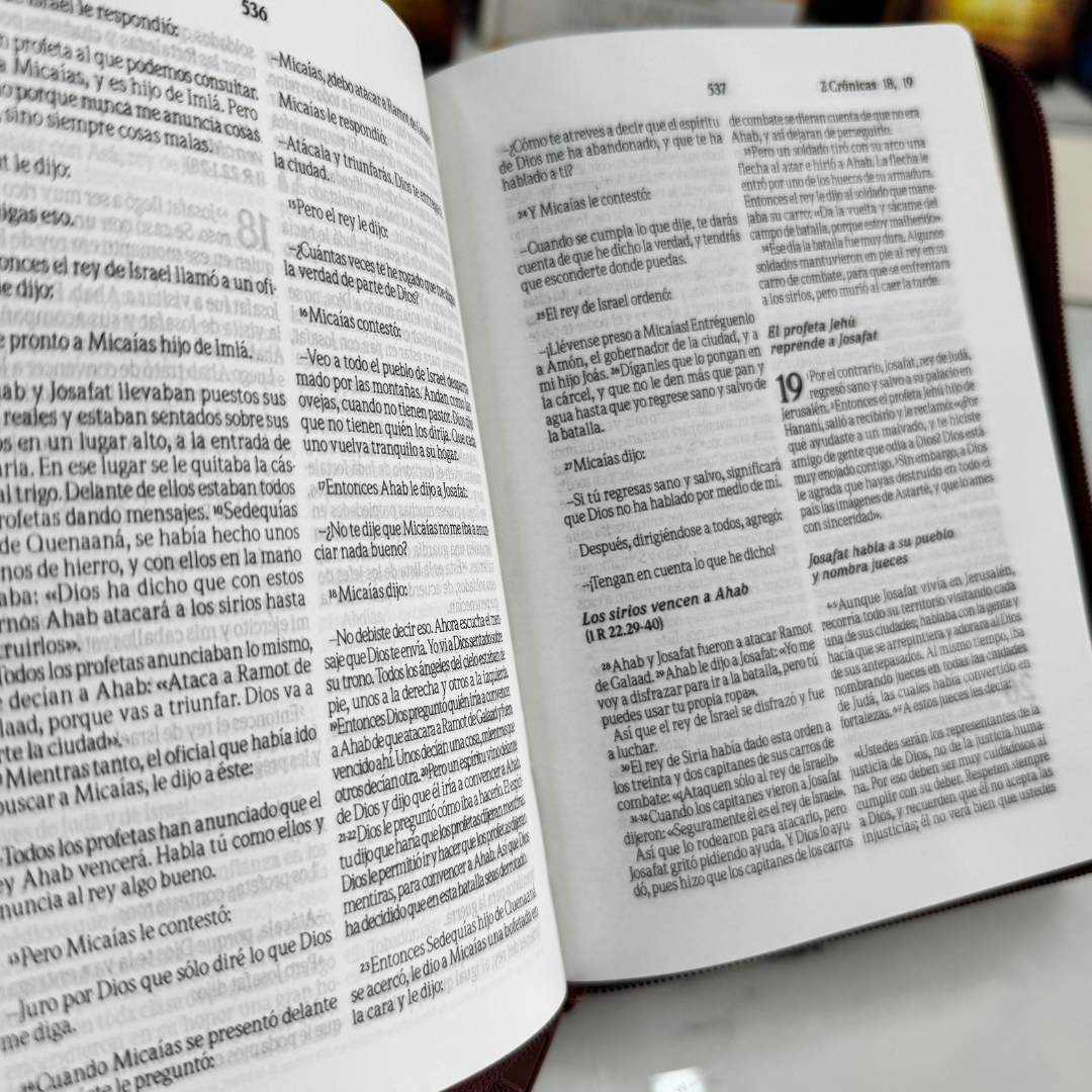 Una Biblia pensada para acompañarte en cada momento de tu vida, con un diseño elegante, práctico y lleno de propósito. Su cubierta en símil piel con cierre no solo la protege, sino que la convierte en una compañera perfecta para llevar contigo a donde vayas.