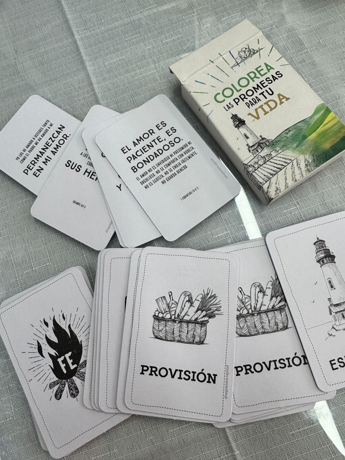 Una poderosa herramienta para fortalecer la fe y encontrar la dirección que necesitas. Esta caja contiene 30 versiculos bíblicos con ilutraciones para colorear y regalar. Encuentras las promesas por temática: Esperanza, Amor, Fe, Ánimo, Provisión, y Sanidad