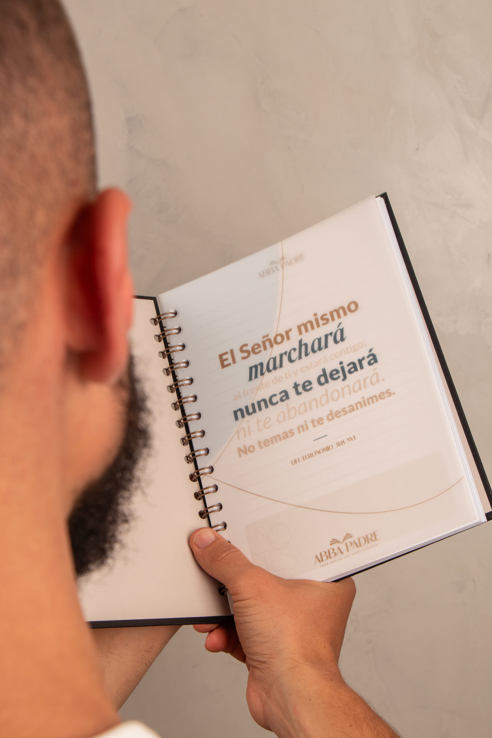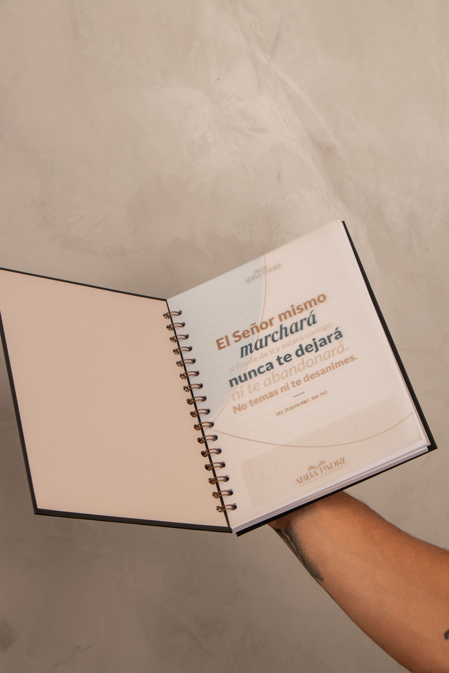 Diseñado con elegancia y sencillez, este cuaderno tipo agenda combina funcionalidad con inspiración, ideal para devocionales, notas, estudios bíblicos, ideas creativas o tus conversaciones íntimas con Dios.