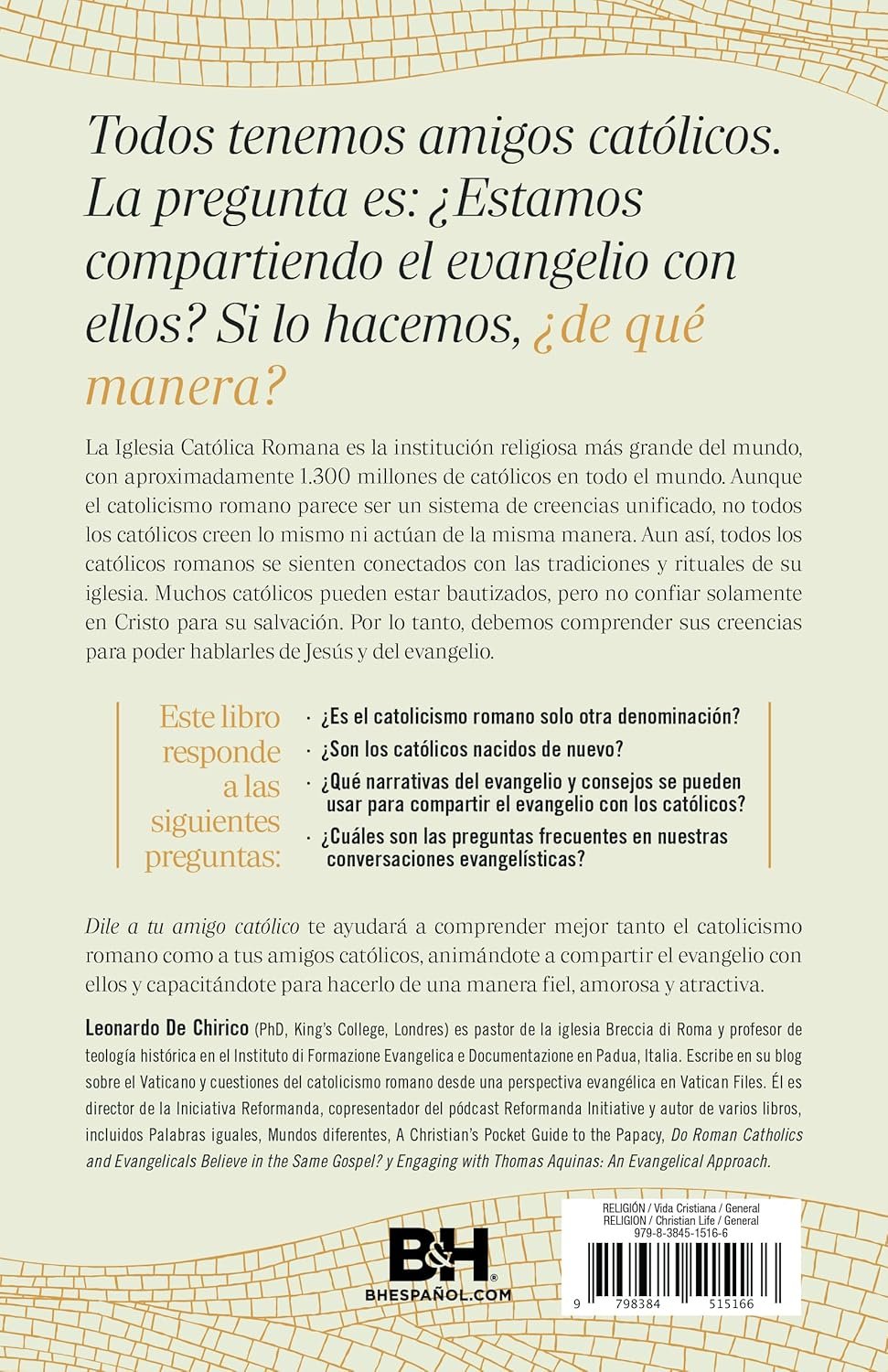 libro Dile a tu amigo católico: Cómo tener conversaciones sobre el Evangelio con amor es una guía práctica y bíblica diseñada para ayudar a los creyentes evangélicos a compartir su fe con amigos o familiares de trasfondo católico.