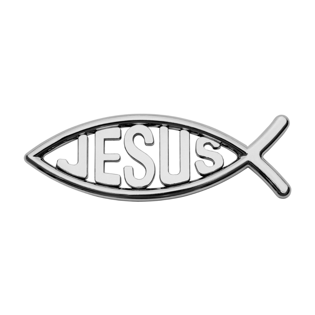 • Diseño en forma de pez cristiano con letras “Jesus”