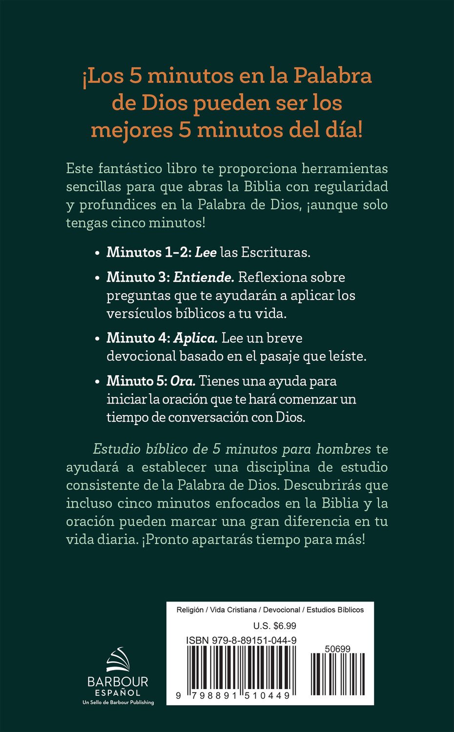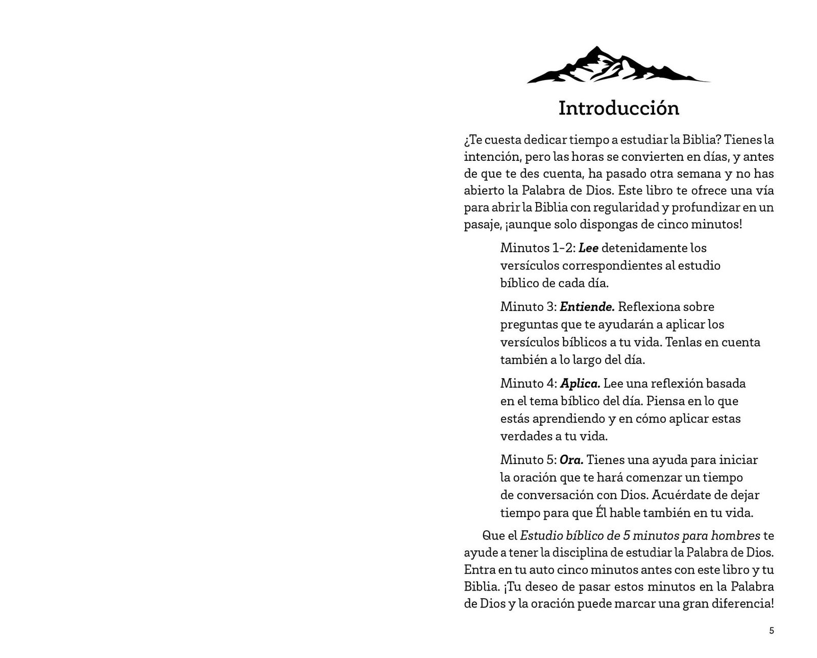 Con este formato práctico descubrirás que cinco minutos enfocados en Dios pueden transformar tu día y ayudarte a desarrollar una disciplina espiritual constante.