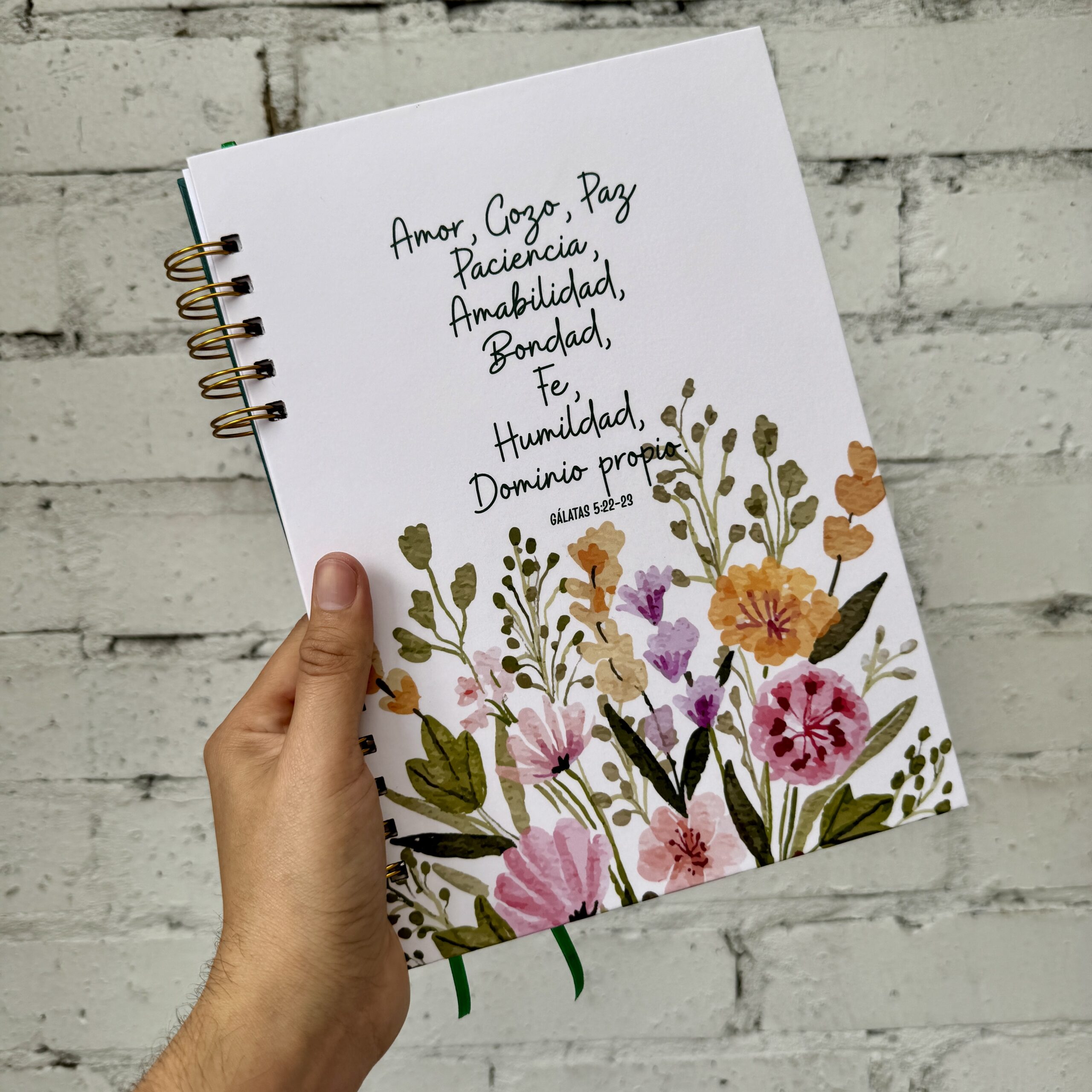 Inspirado en Gálatas 5:22–23, este cuaderno celebra los frutos que el Espíritu produce en nuestra vida: amor, gozo, paz, paciencia, amabilidad, bondad, fe, humildad y dominio propio.