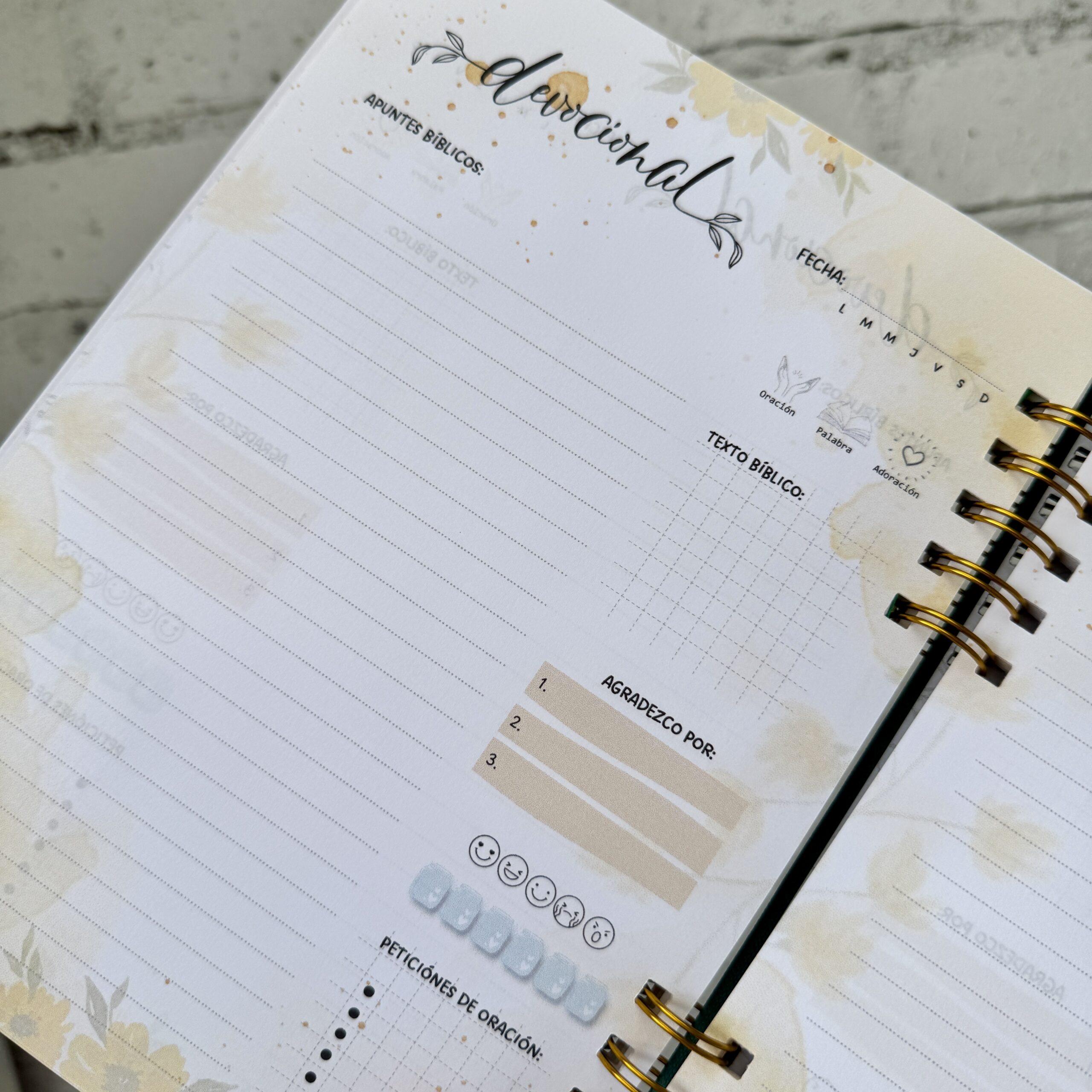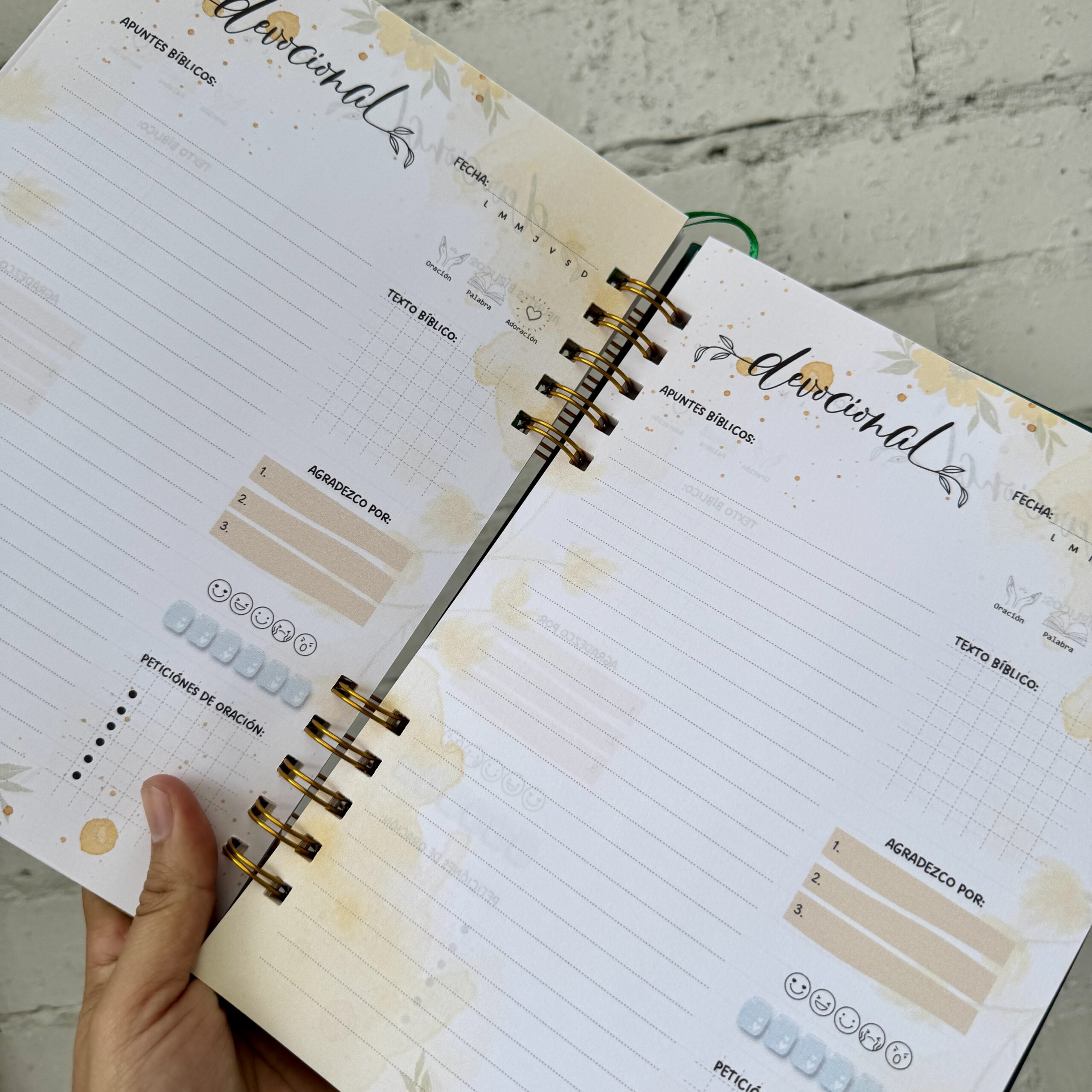 Un cuaderno que inspira, motiva y acompaña tu caminar espiritual, recordándote cada día que el Espíritu está obrando en ti. 🌸📖✨