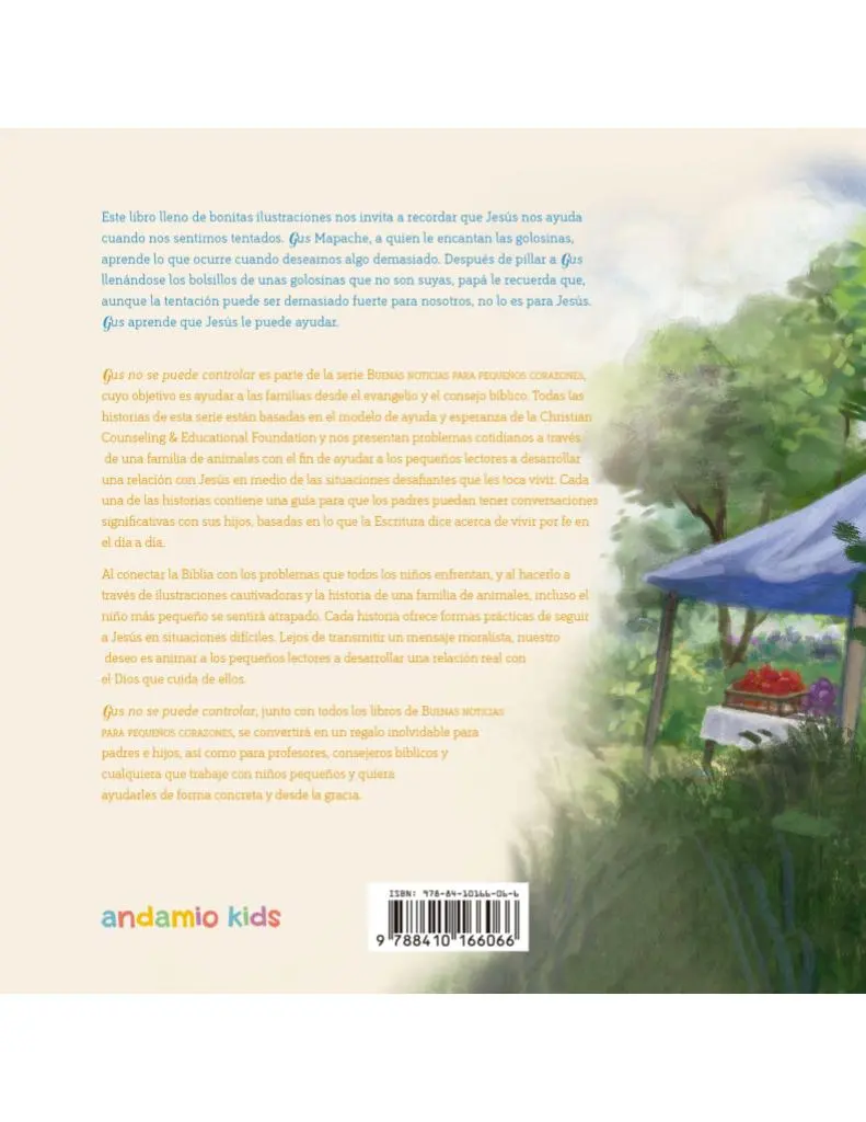 Gus no se puede controlar aborda uno de los retos más comunes en la infancia: el deseo intenso por algo y la dificultad para decir “no”. Gus Mapache, amante de las golosinas, se encuentra en un gran problema cuando decide llenar sus bolsillos con dulces que no le pertenecen. Pero papá le recuerda una verdad esencial: aunque la tentación puede ser demasiado fuerte para nosotros, jamás lo es para Jesús.