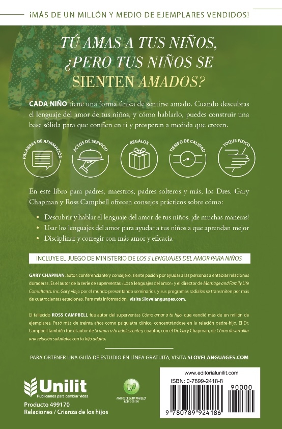 En este best seller internacional, con más de un millón de copias vendidas, el Dr. Gary Chapman y el Dr. Ross Campbell ofrecen herramientas prácticas y profundas para que los padres aprendan a hablar el lenguaje del amor de sus hijos, fortaleciendo así los lazos familiares y el desarrollo emocional de los pequeños.