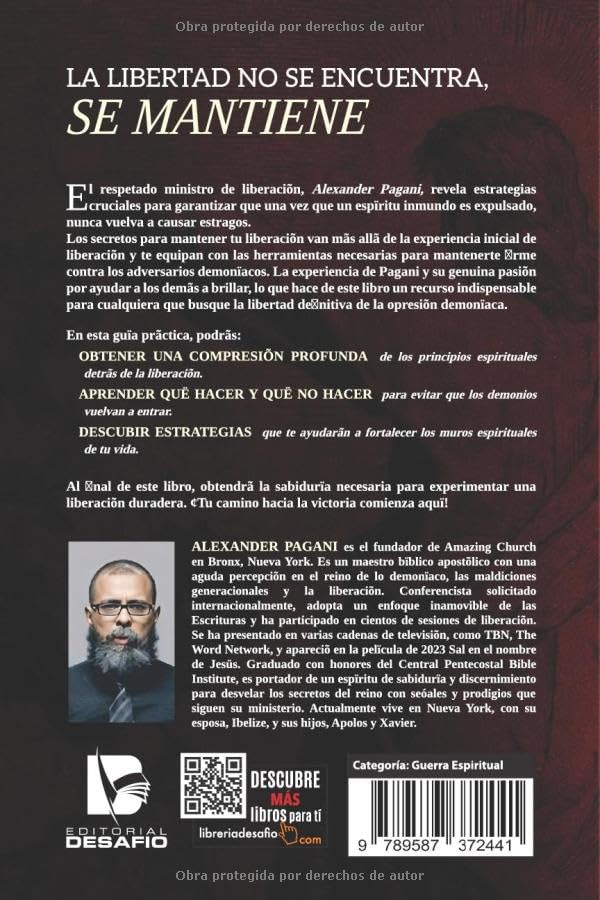 Este libro va más allá del momento inicial de libertad y se enfoca en el proceso diario de mantenerla, ofreciendo herramientas espirituales claras para resistir ataques, cerrar puertas abiertas y edificar muros espirituales sólidos. Con un enfoque directo, pastoral y profundamente bíblico, Pagani guía al lector hacia una libertad duradera y consciente.