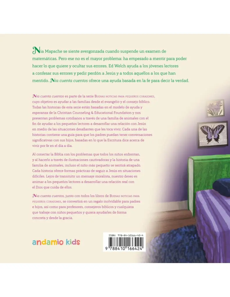 Nia cuenta cuentos es una dulce historia diseñada para ayudar a los niños a comprender sus emociones, sus palabras y el impacto que tienen en los demás. A través de las aventuras de Nia y su familia de animales, los pequeños lectores descubren que la verdad, la gracia y el amor de Jesús pueden transformar incluso los momentos más difíciles.