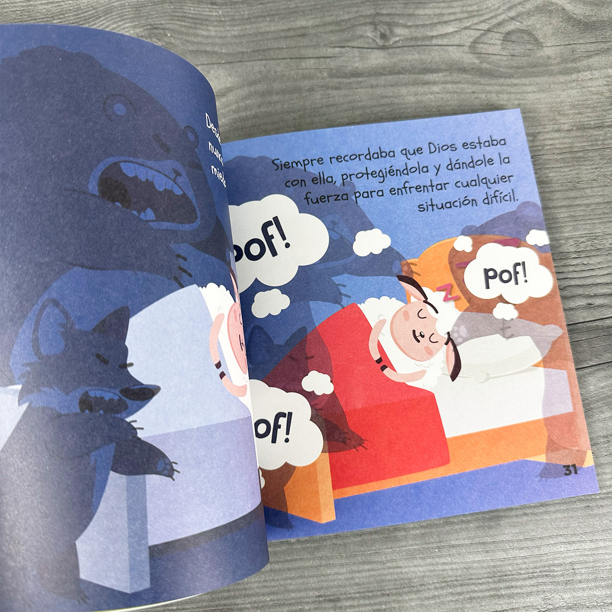 Inspirado en el Salmo 3, este cuento lleno de color y ternura enseña a los niños y niñas a confiar en Dios incluso en medio del miedo. Con frases sencillas y poderosas como: “No temeré, porque Tú me rodeas”, l os pequeños aprenden que no están solos, que siempre hay una voz de amor que los protege.