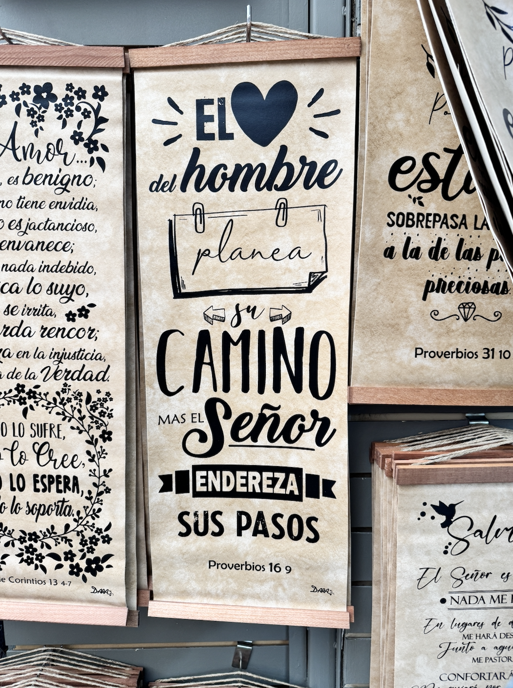 Este pergamino cristiano es más que una decoración: es un recordatorio diario de que, aunque planeamos nuestro camino, es Dios quien guía y endereza nuestros pasos.