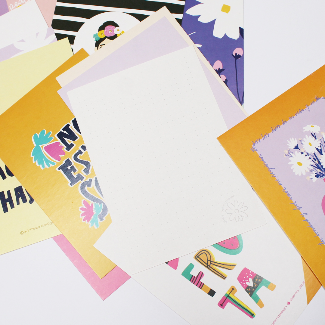 – Cada pack tiene 16 postales con diseños e ilustraciones surtidos.