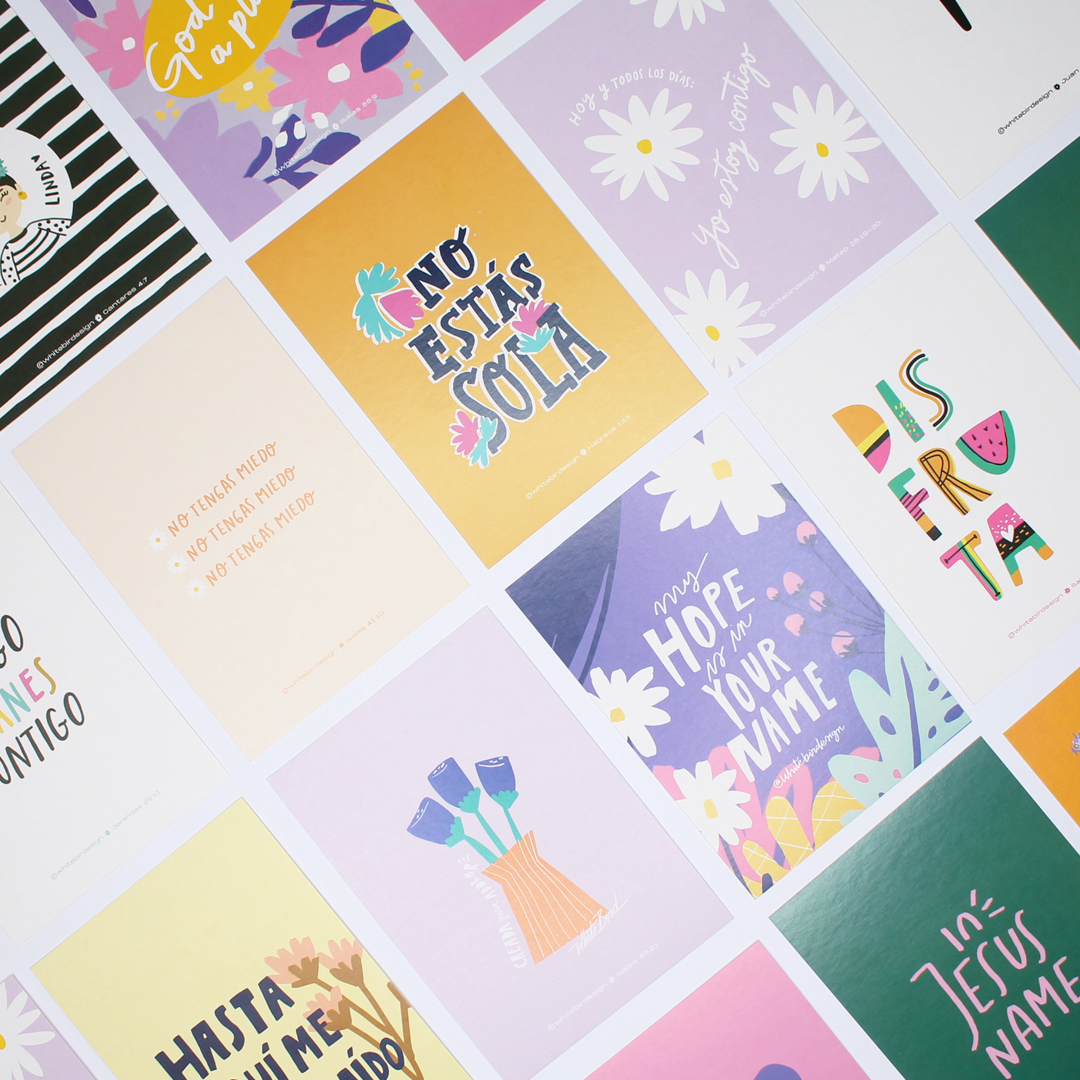 Escribe notas sobre el amor, bondad, poder, esencia y grandeza de Dios para esparcirlas por el mundo. Estas postales son perfectas para regalar o para decorar tu Biblia, habitación o lugar de trabajo y estudio.