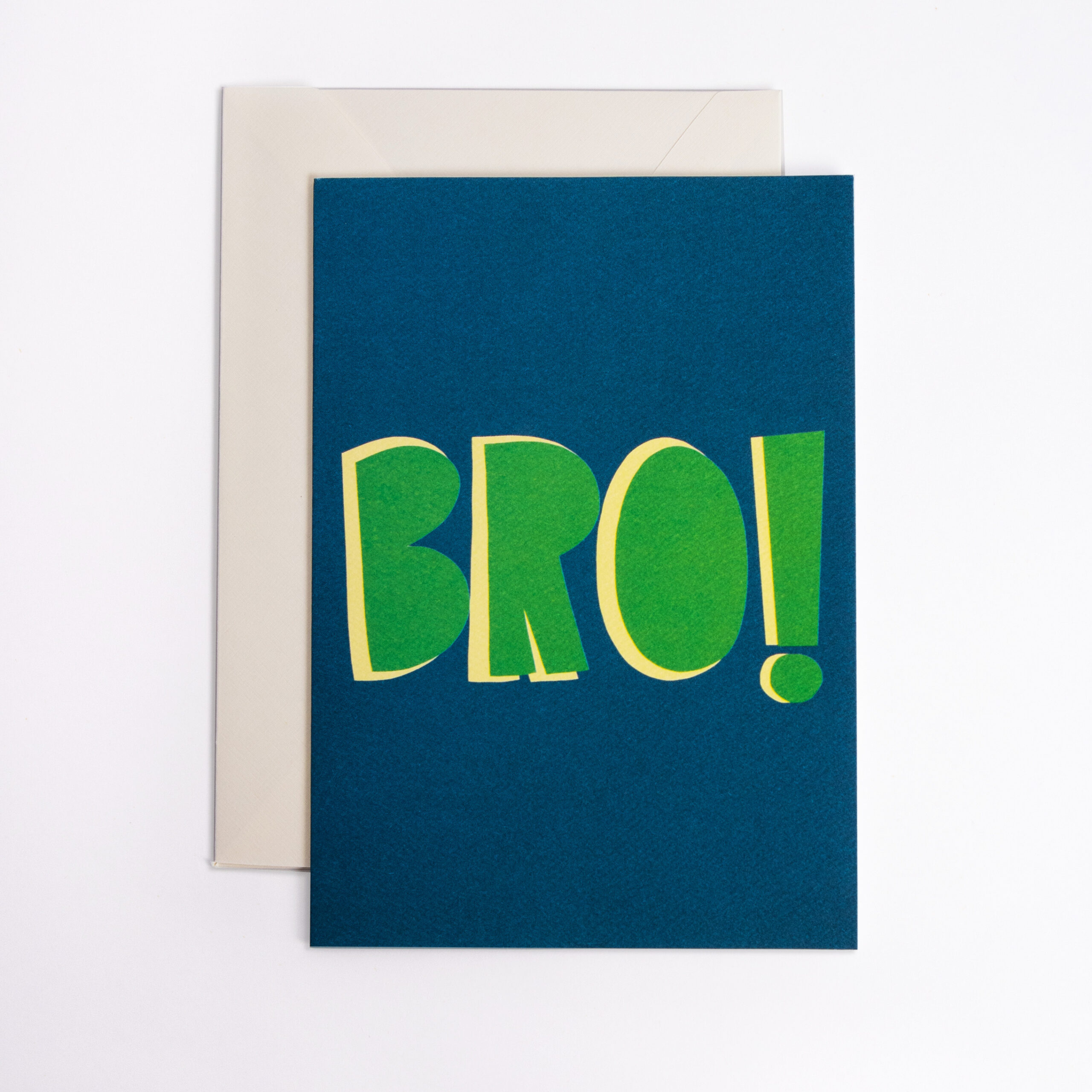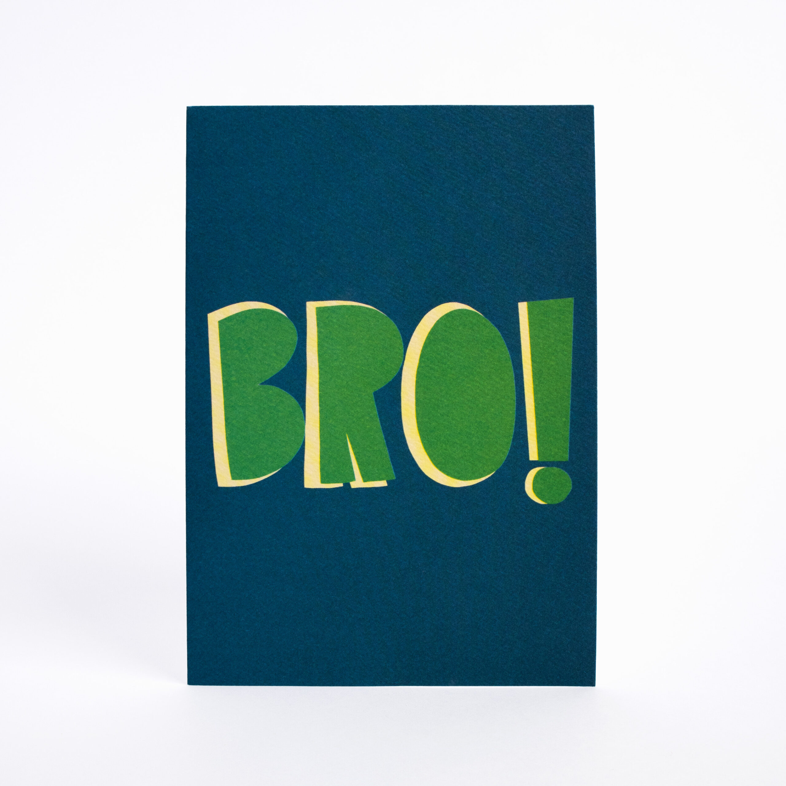 Para tu amigo inseparable, la tarjeta de amistad “Bro” es ideal para mostrar tu aprecio. Tarjeta impresa en papeles finos con textura. Frase por fuera y, por dentro, espacio en blanco para escribir tu dedicatoria. Sobre color crema. Dimensiones: 11,5cm X 16cm cerrada y 23cm X 16cm abierta.